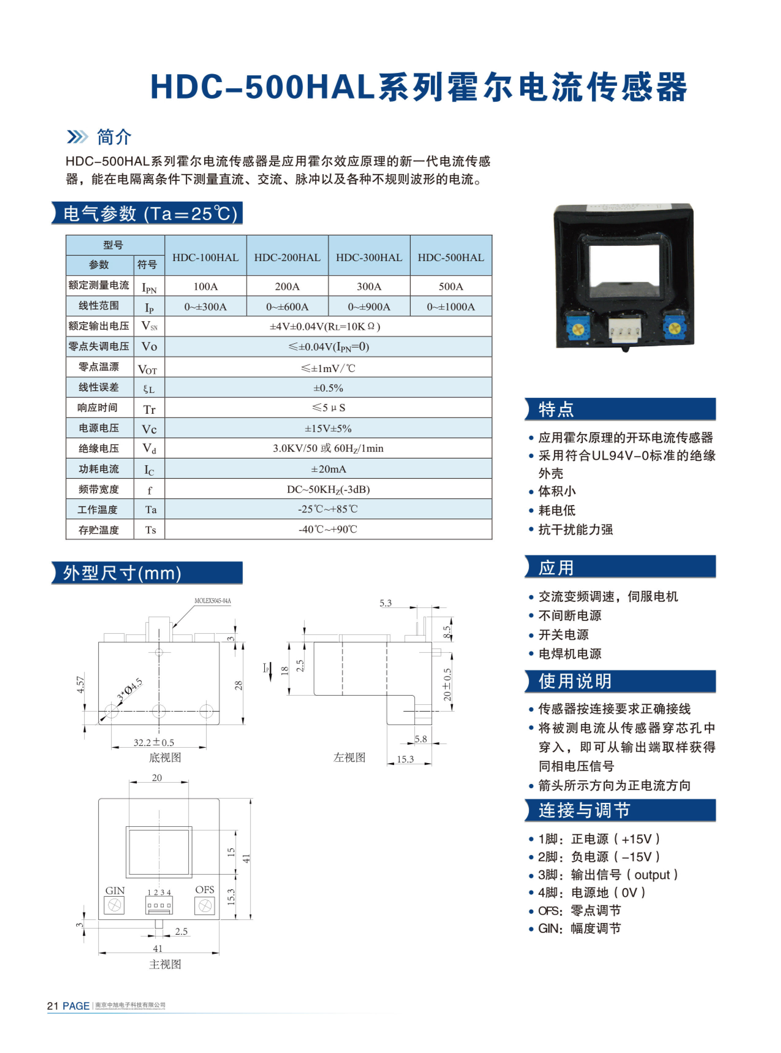 HDC-500HAL系列霍爾電流傳感器是應(yīng)用霍爾效應(yīng)原理的新一代電流傳感器,能在電隔離條件下測(cè)量直流、交流、脈沖以及各種不規(guī)則波形的電流。